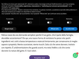 Focused premium cat food product with natural ingredient positioning, High customer satisfaction and organic review base, Modern e-commerce stack supporting targeted Italian market.